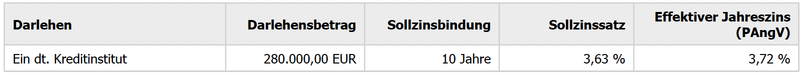 Bei diesem Objekt ergeben sich folgende Kosten: